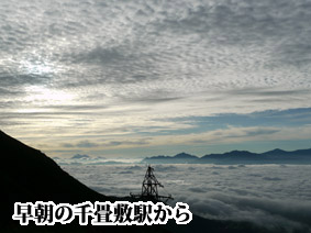 しらび平駅から約7分。思った以上に早いスピードでロープウェイは上昇し、千畳敷駅に到着しました。時間は朝6時前。目の前に現れた光景は雲上の絶景でした。