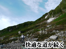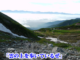 登山道は思った以上に整備されていて快適な道。気持ちのいい朝に雲の上を歩くのは快感。