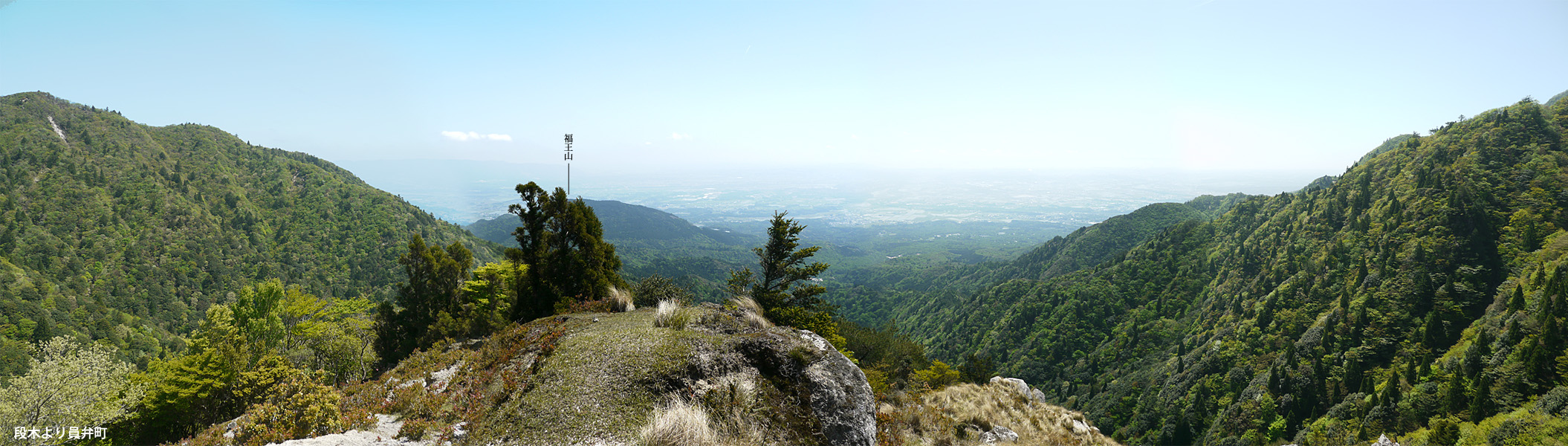 予定どおりちょっと早いけど、ここでお昼ご飯。持ってきたおにぎりとパンとSVEAで湯を沸かしてスープとコーヒー。員弁の街を見下ろし、歩いてきた稜線を見上げながら至福のひととき。