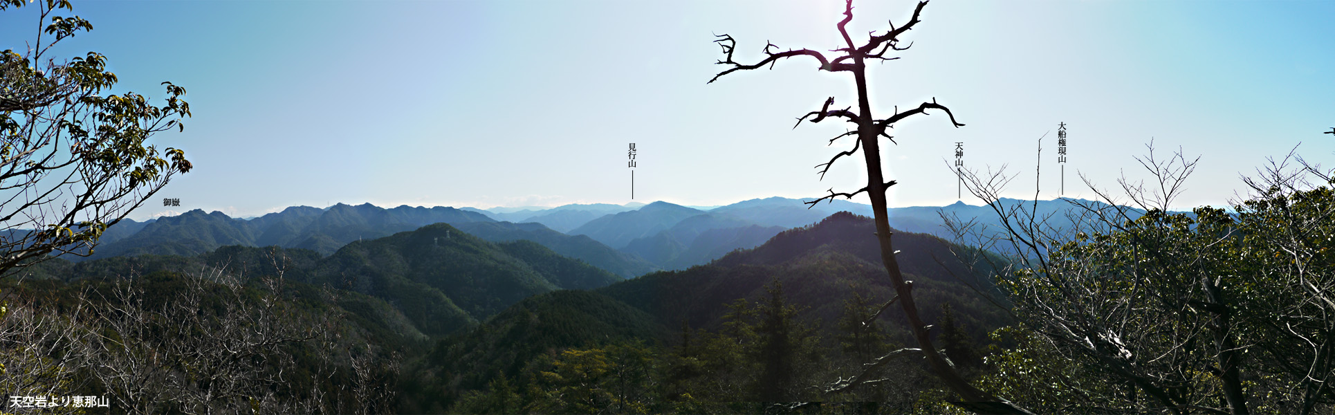 恵那山方面をちょっと拡大。左側に笠置山、見行山と続く。