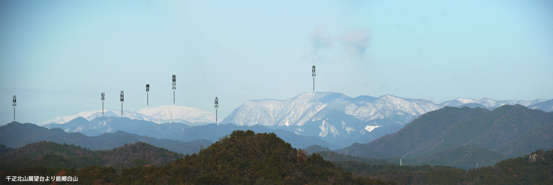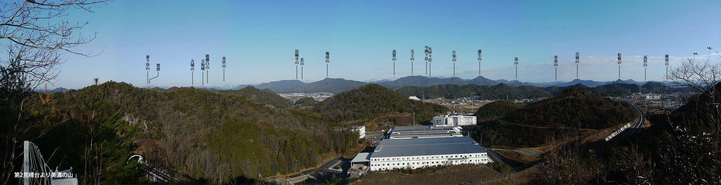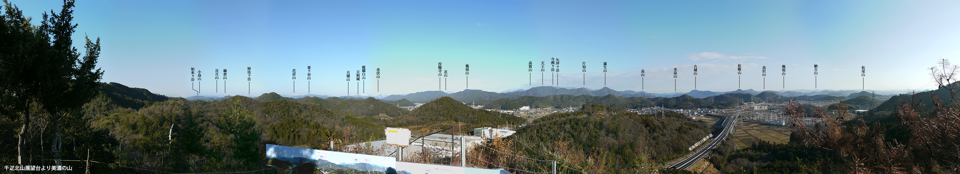 ここからは高賀三山をはじめ、美濃でお馴染みの天王山、誕生山、古城山、松鞍山と並んでいるのが見える。そして遠くの白い山は能郷白山。今年は雪が多そう。